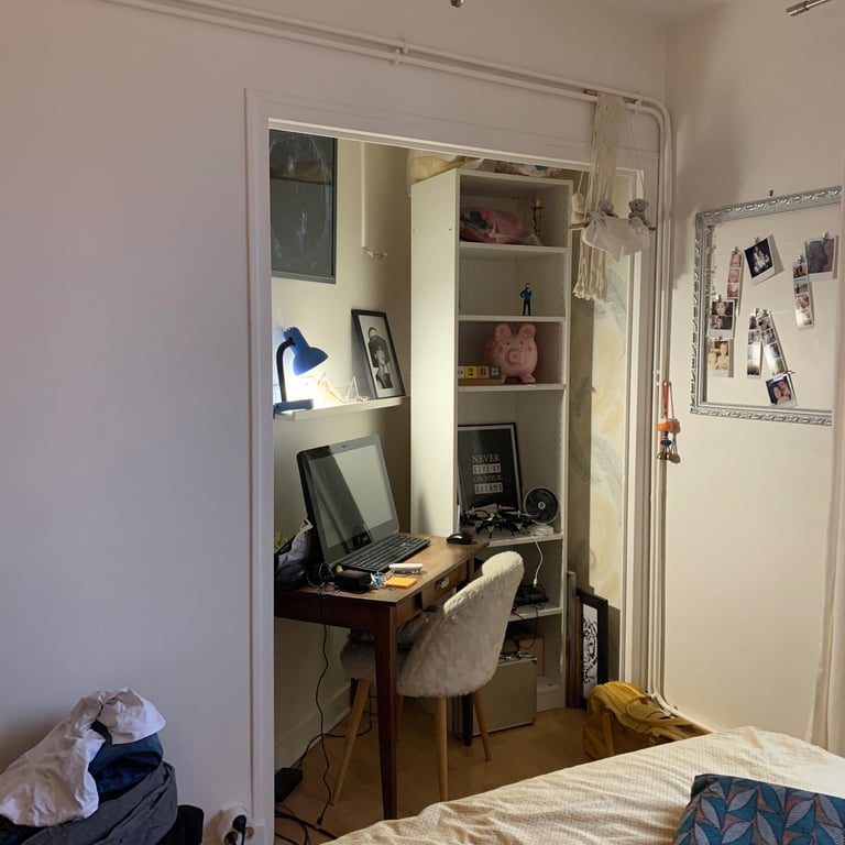 La chambre disposait d’un espace restreint, difficilement exploitable, qui ne permettait pas d’installer un bureau sans empiéter sur la circulation ou sur l’espace nuit. Les clients avaient besoin d’un véritable espace de travail, tout en conservant une chambre agréable à vivre.
