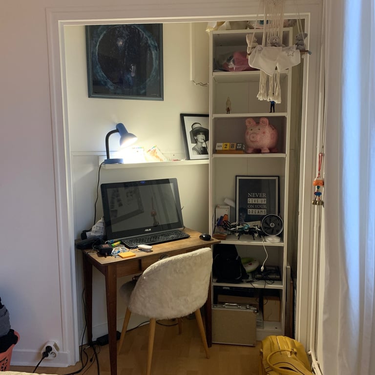 Dans cet appartement situé à Nantes, Angélique et Yann souhaitaient transformer un coin exigu de la chambre parentale en un véritable espace bureau. La contrainte principale : un espace étroit, où chaque centimètre devait être pensé avec précision pour intégrer un bureau fonctionnel sans alourdir la pièce.