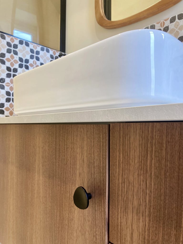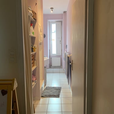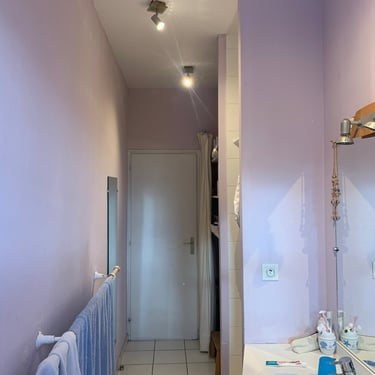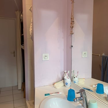 La salle de bain existante présentait plusieurs contraintes : une configuration en longueur, peu de rangements, une simple vasque posée sur un plan de travail, en l'état depuis l'aménagement dans la maison il y a 10 ans. L’espace était mal exploité et ne répondait plus aux besoins quotidiens de Céline et Franck, notamment dans le cadre d’une utilisation familiale.