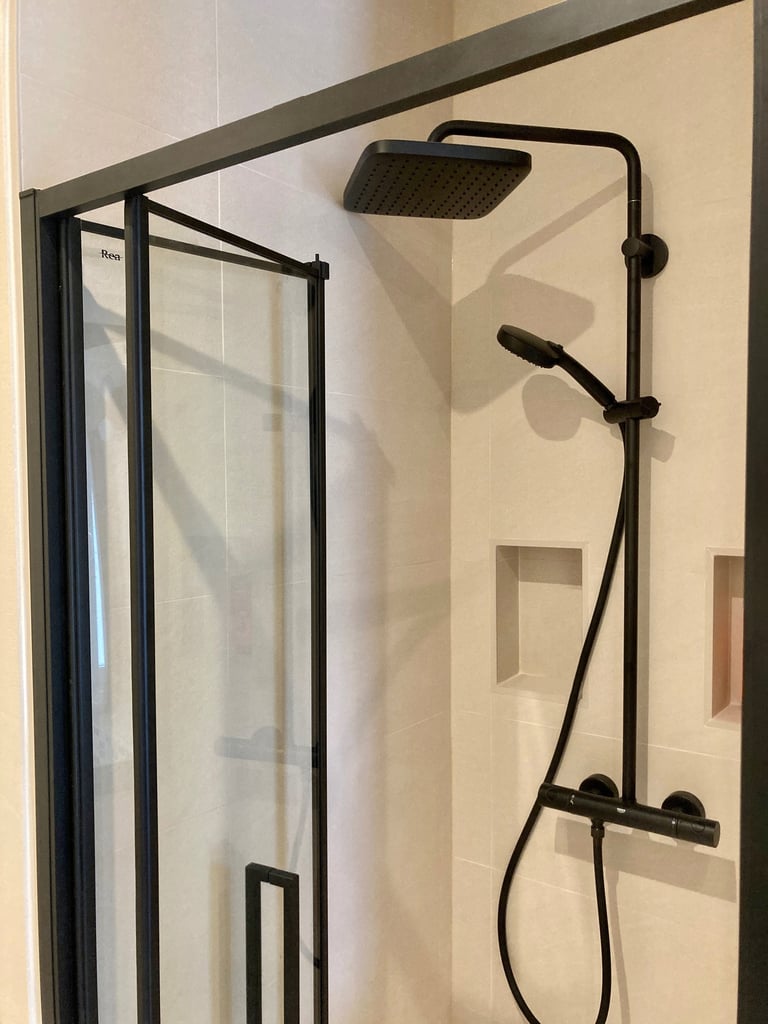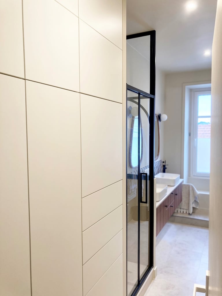 La salle de bain est désormais plus lumineuse, fonctionnelle, esthétique et adaptée au quotidien de toute la famille. Malgré une surface contrainte, chaque élément trouve sa place grâce à une conception optimisée et sur mesure.
